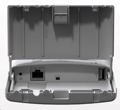 Jedná se o novinku založenou na RB912UAG-5HPnD ve venkovním odolném provedení. K dispozici jsou 2 RSMA konektorry pro připojení antény. Příprava pro rozšíření o další 3 RSMA, v případě osazení mini-PCIe karty, například pro vytvoření dual-band AP. Pod krytem zespod jednotky se nachází USB a ethernetový port, zároveň se svorkou pro zemnící drát.