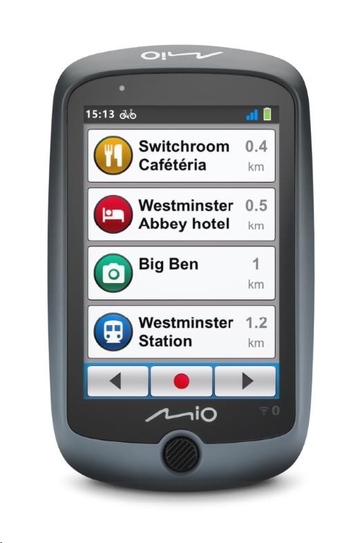 Zařízení Mio Cyclo™ Discover Connect s velkou 3,5" dotykovou obrazovkou, s jednoduchou strukturou nabídky a s přehlednými obrazovkovými tlačítky zajištuje opravdu snadné používání.