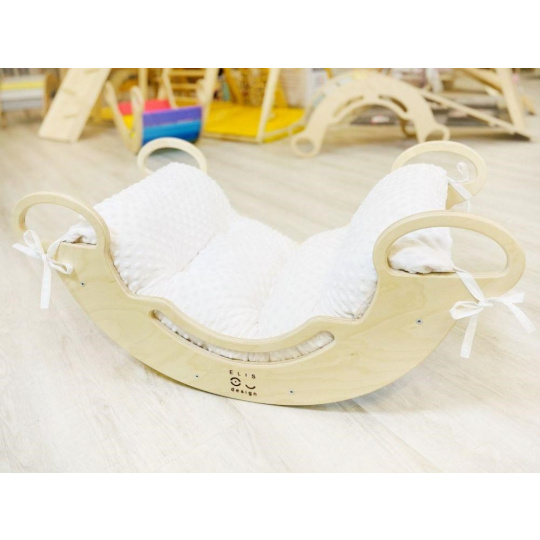 Dřevěná dětská Montessori houpačka smile 6in1 vás překvapí svým designem i multifunkčností. Houpačka bude každý den svým širokým úsměvem lákat děti k příjemnému pohoupání i k zábavné hře. Její využití je všestranné, může být houpačkou, skluzavkou, prolézačkou, skrýší i sedačkou, při doplnění oboustranným prknem i dětským nábytkem. Oboustranné prkno není součástí houpačky. Díky svěžím fresh barvám rozzáří každý dětský interiér. Vyrobená je z těch nejkvalitnějších materiálů, ručně dohladka opracovaná a lakovaná barvami s atestem. Montessori houpačka smile je širší než naše Montessori houpačky 5in1, proto k této houpačce nabízíme i speciální oboustranné prkno, které je doplňkem k houpačkám smile. Díky prknu snadno proměníte houpačku smile v dětský stoleček. Oboustranné prkno není součástí houpačky, pro využití houpačky jako nábytku je nutné prkno samostatně dokoupit..