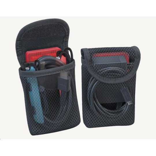 • Dvě vyjímatelné síťované kapsy pojmou napájecí adaptér s kabelem, propojovací HDMI kabel, řemínky na zápěstí pro ovladače Joy-Con 2 i přiložená plastová pouzdra pro herní a microSD karty.