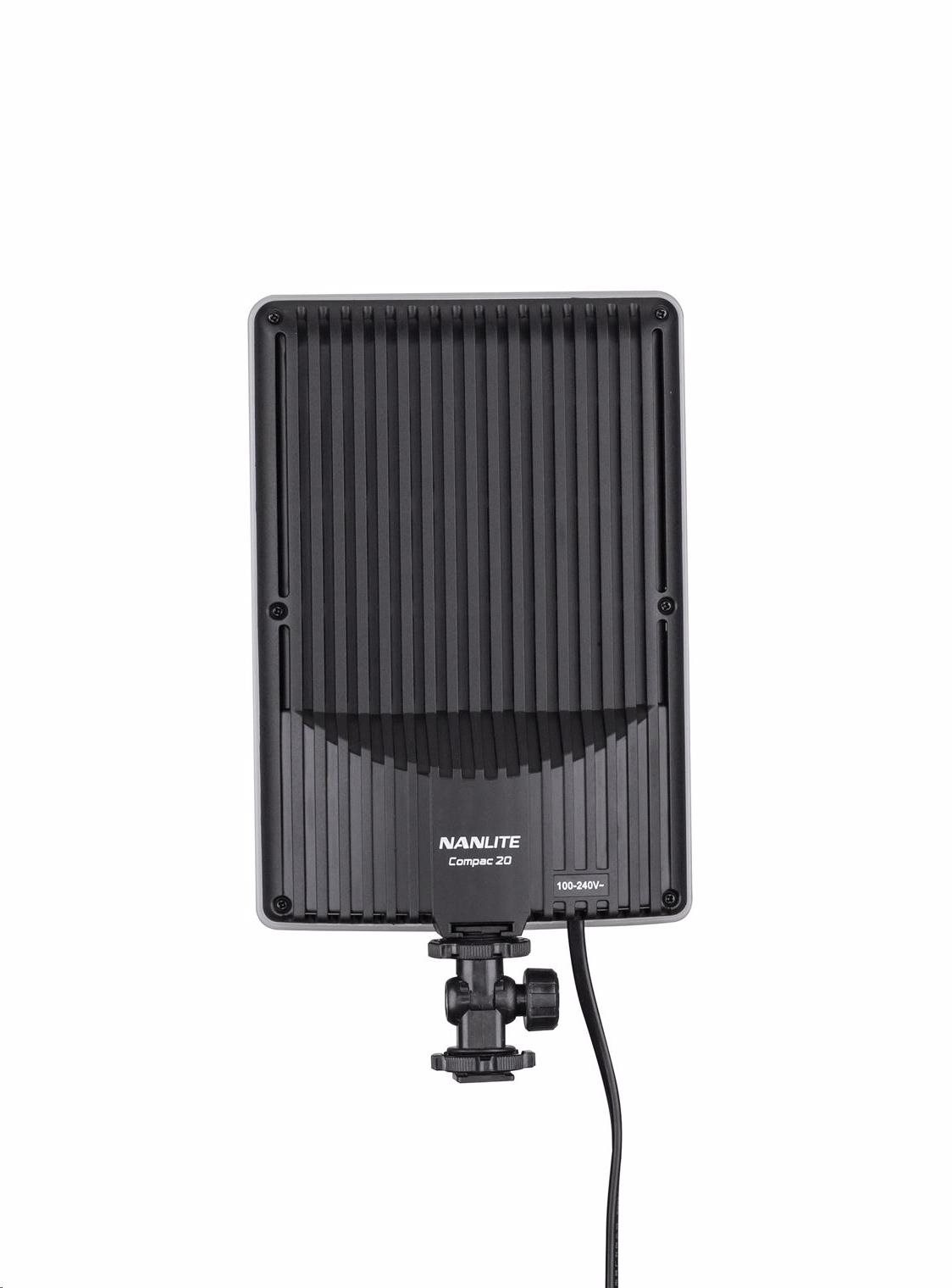 Naklonit světlo můžete ve více než 180 stupních do obou stran, abyste světlo nastavili podle vašich potřeb. Nanlite Compac 20 je dodáván se standardním 5/8" závitem, díky kterému jej můžete připevnit na jakýkoli standardní stojan na světlo.