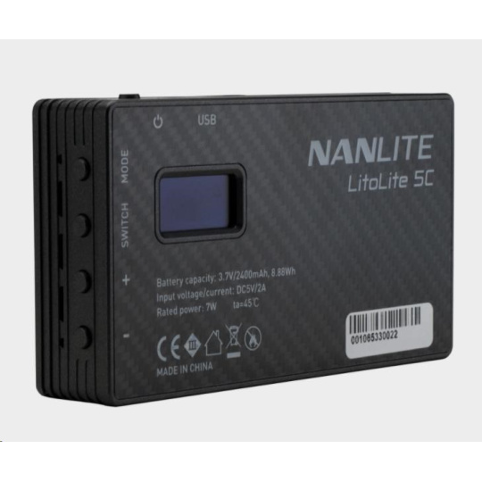 LitoLite 5C je kompaktní LED světelný panel s vestavěnou Li-Ion baterií, nabíjením přes USB-C, úžasným jasem, nastavitelnou teplotou barev od 2700K do 7500K s posunem barev od zelené do purpurové, 360° ovládáním odstínu se 100 úrovněmi nastavení sytosti barev a 15ti předprogramovanými, nastavitelnými speciálními světelnými efekty.