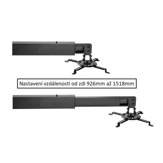 Nástěnný držák na projektory Fiber Mounts M9C45    Nástěnný držák na projektor, nastavení vzdálenosti od zdi 926-1518mm, otočný +/-180°, sklopný +/-15°, skryté vedení kabeláže, nosnost 15kg    Kvalitní nástěnný držák na projektor. Nastavitelná vzdálenost od zdi 926mm až 1518mm, naklápění do stran +/- 15°, otáčení do stran +/- 180°, univerzální úchyt s roztečí 54mm až 320mm na 3 nebo 4 šrouby umožňuje uchycení naprosté většiny projektorů, nosnost 15kg. Držák má systém pro skryté vedení kabeláže, instalace a nastavitelnost jsou velmi snadné. Nástěnná instalační plocha o rozměrech 505x269mm zajišťují výborné rozložení hmotnosti a spolehlivé uchycení na zdi.      Nástěnný držák na projektory s krátkou projekční vzdáleností Fiber Mounts M9C45     Technické údaje:  nosnost 15kg univerzální, rozteč otvorů pro uchycení 54-320mm uchycení projektoru na 3 nebo 4 šrouby nastavitelná vzdálenost od zdi 926-1518mm naklápění do stran +/- 15° otáčení do stran +/- 180° nástěnná instalační plocha o rozměrech 505x269mm systém pro skryté vedení kabeláže kvalitní kovová konstrukce instalační sada šroubů, hmoždinek a vrutů barevné provedení černé záruka 5 let    Systém pro ukrytí veškeré kabeláže, polohování projektoru, snadná instalace Fiber Mounts M9C45     Držák projektoru M9C45 je velmi univerzální, vesměs je na něj možné zavěsit všechny projektory s hmotností do 15kg. Uchycení je možné jak na 3 tak na 4 šrouby - záleží který typ podporuje projektor. Polohování je velmi snadné. Výborná kvalita podtržená zárukou 5 let..