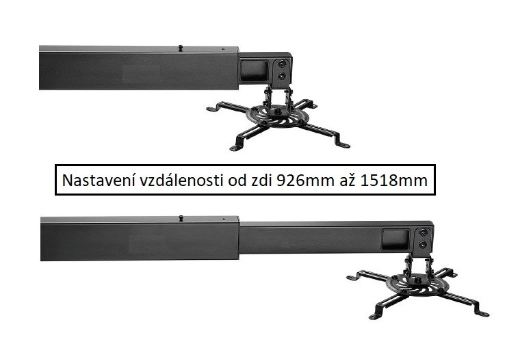 Nástěnný držák na projektory Fiber Mounts M9C45 Nástěnný držák na projektor, nastavení vzdálenosti od zdi 926-1518mm, otočný +/-180°, sklopný +/-15°, skryté vedení kabeláže, nosnost 15kg Kvalitní nástěnný držák na projektor. Nastavitelná vzdálenost od zdi 926mm až 1518mm, naklápění do stran +/- 15°, otáčení do stran +/- 180°, univerzální úchyt s roztečí 54mm až 320mm na 3 nebo 4 šrouby umožňuje uchycení naprosté většiny projektorů, nosnost 15kg. Držák má systém pro skryté vedení kabeláže, instalace a nastavitelnost jsou velmi snadné. Nástěnná instalační plocha o rozměrech 505x269mm zajišťují výborné rozložení hmotnosti a spolehlivé uchycení na zdi. Nástěnný držák na projektory s krátkou projekční vzdáleností Fiber Mounts M9C45 Technické údaje: nosnost 15kg univerzální, rozteč otvorů pro uchycení 54-320mm uchycení projektoru na 3 nebo 4 šrouby nastavitelná vzdálenost od zdi 926-1518mm naklápění do stran +/- 15° otáčení do stran +/- 180° nástěnná instalační plocha o rozměrech 505x269mm systém pro skryté vedení kabeláže kvalitní kovová konstrukce instalační sada šroubů, hmoždinek a vrutů barevné provedení černé záruka 5 let Systém pro ukrytí veškeré kabeláže, polohování projektoru, snadná instalace Fiber Mounts M9C45 Držák projektoru M9C45 je velmi univerzální, vesměs je na něj možné zavěsit všechny projektory s hmotností do 15kg. Uchycení je možné jak na 3 tak na 4 šrouby - záleží který typ podporuje projektor. Polohování je velmi snadné. Výborná kvalita podtržená zárukou 5 let..