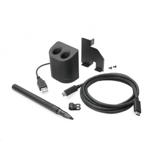 Jediný zabezpečený kabel USB-C spojuje vaše zařízení s displejem a automaticky synchronizuje vestavěný fotoaparát, reproduktory, mikrofon, dotykové zařízení a pera.