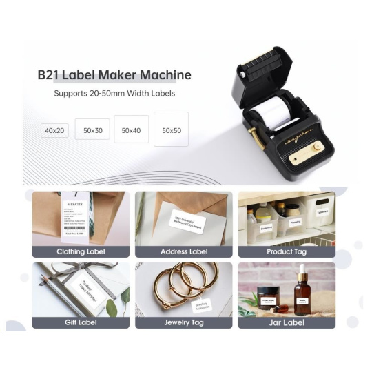NIIMBOT B21S je tiskárna etiket, která kombinuje výkon, pohodlí a kvalitu. S její jednoduchou obsluhou a vynikajícími funkcemi vás překvapí, jak rychle a snadno můžete vytvářet profesionální etikety.