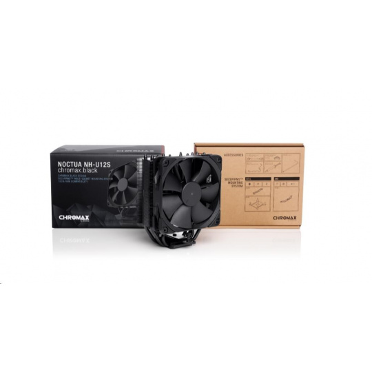 NH-U12S chromax.black je celočerná verze oblíbeného modelu NH-U12S. Díky ověřenému designu heatsinku a větráku NF-F12 PWM dosahuje stejně perfektního výkonu za výjimečné tichosti provozu. To vše v elegantním černém designu. Tuto dokonalost uzavírá známý SecuFirm2™ multi.socket systém, teplovodivá pasta NT-H1 od Noctuy a plná záruka. NH-U12S chromax.black je tak samozřejmou volbou, pokud hledáte všestranně kompatibilní 120mm heatsink, který vypadá tak skvěle, jak chladí.