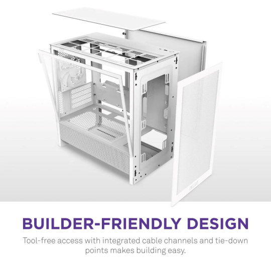Skříň H3 Flow micro-ATX kombinuje prostorově úsporný design s vysokým výkonem. Je navržena tak, aby podporovala komponenty plné velikosti, a je vybavena panely s velmi jemnou síťovinou a větraným krytem zdroje, které udržují konzistentní a optimalizované proudění vzduchu v celé sestavě.