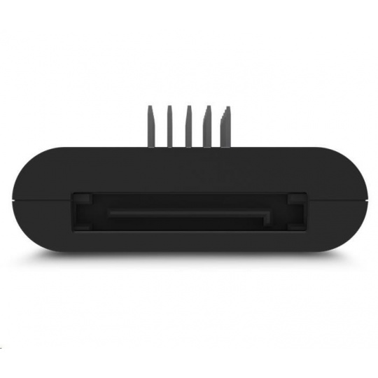 Součástí balení je SATA napájecí kabel, USB kabel, stahovací pásek na suchý zip a oboustranná lepicí páska 3M Dual Lock.