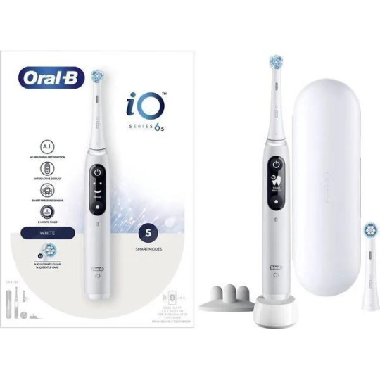 Oral-B iO Series 6s elektrický zubní kartáček, časovač, tlakový senzor, 5 programů, aplikace Oral-B, bílá