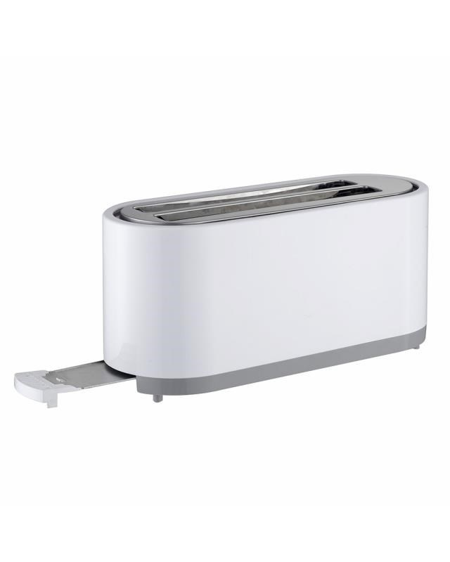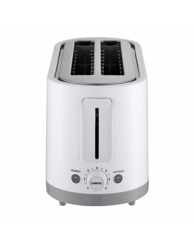 Topinkovač - na 4 topinky, regulace opékání, rozmrazování, tlačítko okamžitého ukončení, automatické vypnutí, světelná signalizace a rozpékač, součástí vyjímatelná miska na drobky a nástavec na rozpékání pečiva, příkon 1400 W, materiál plast, barva bílá.... více