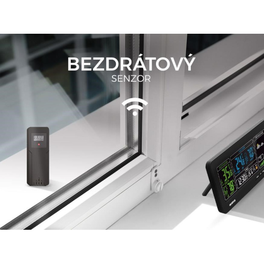 Meteo-1 je vybavena bezdrátovým senzorem s dosahem až 30 metrů. Je zároveň voděodolný (IPX3) takže mu nepřekáží ani sprška deště či sněhová nadílka. Jednoduše si jej položíte na okenní parapetu nebo zavěsíte na zeď. Má zabudovaný vlastní LCD displej, takže teplotu a vlhkost si přečtete i na senzoru i na hlavní obrazovce.