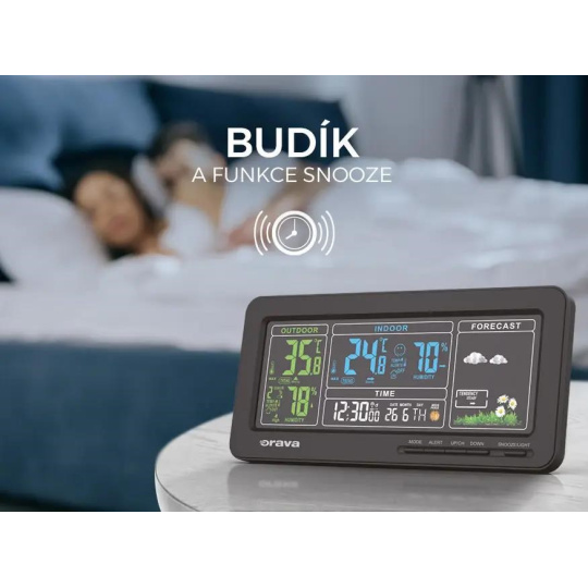Nastavte si svoji meteostanici i jako budík! A pokud si chcete dopřát ještě pár minut vytouženého spánku využijte funkci zdřímnutí (SNOOZE), která vám budík odloží o 5 minut.
