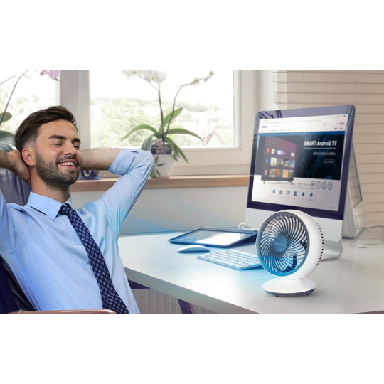 Orava SF-5 mini stolní ventilátor, 4 W, oscilace, USB nabíjení, 3 rychlosti, průměr 15 cm
