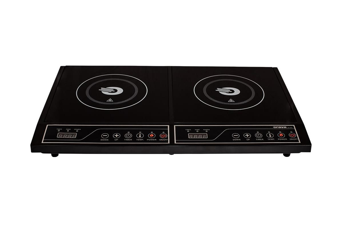 Indukční vařič Orava. Indukční vařič VP-40i se dvěma varnými zónami, které tvoří elegantní černé sklo s velmi jednoduchou údržbou. Přehledné dotykové ovládání umožňuje osm úrovní nastavení teploty od 60°C do 240°C. Časovač, LED displej.