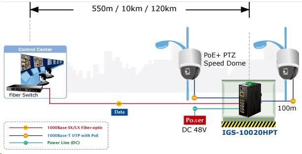 Planet IGS-10020HPT PoE switch 8x 1000Base-T, 2x SFP, 802.3at 270W, IP30, -40 až 75°C, SNMP, IGMPv3, IPv6
