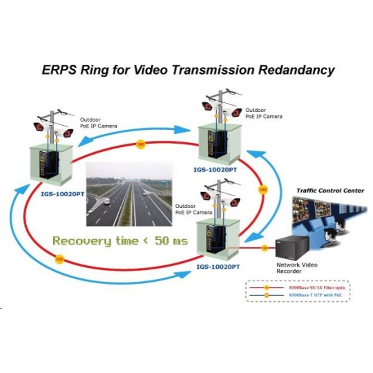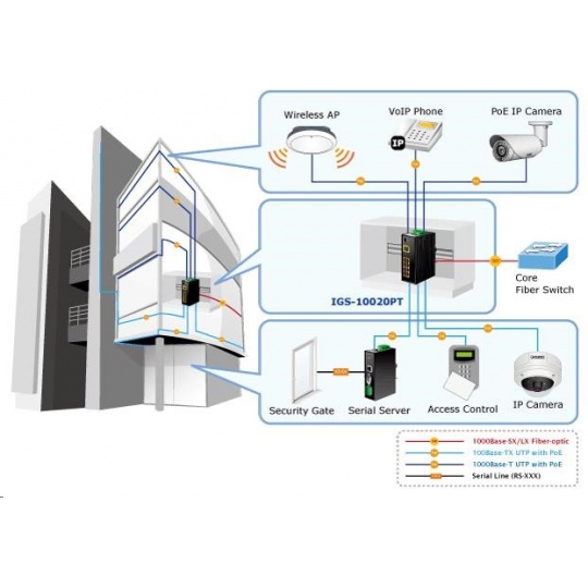 Planet IGS-10020PT PoE switch 8x 1000Base-T, 2x SFP, 802.3af 130W, IP30, -40 až 75°C, SNMP, IGMPv3, IPv6 Inteligentní přepínače pro průmyslový Ethernet jsou určeny do náročných provozních podmínek s velkým rozsahem pracovních teplot, nejistým napájením a častými otřesy. Zároveň poskytují vynikající možnosti vícenásobných propojení pro dosažení robustnosti propojení systémů s velmi nízkou dobou zotavení. IGS-10020PT je vybaven pro redundanci kromě dobře známé metody Spanning Tree (jejíž doba zotavení je v řádu sekund) především specializovanou funkcí "Redundant ring" která má dobu zotavení a nalezení nové cesty do 300ms. Jako PoE přepínač umožňuje přímo napájet až 8 koncových zařízení dle normy IEEE 802.3af, je tak ideálním prvkem pro aplikace se sníženou možností napajení. Přepínače řady IGS se snadno instalují na standardní DIN lištu nebo přímo na zeď a umožňují nasazení dobře známé Ethernetové technologie i v průmyslovém prostředí. Stejně tak jsou vhodné pro instalace do venkovně umístěných skříní s velkým kolísáním pracovních teplot (typicky bezdrátové a MAN ISP aplikace). Vlastnosti: - 8 portů 1000Base-T, Switching, Full Duplex (1000/2000 Mbps), Auto-Negotiation (10/100/1000 Mbps), automatická detekce přímý/křížený kabel na každém portu - na všechny implementace PoE IEEE 802.3af injektory se zatížitelností 15,4W/port, celkově až 130W - 2 porty SFP pro instalaci modulů 1000Base-SX/LX/BX nebo 100Base-FX - propustnost: sběrnice 20Gbps, provozně: 14,8Mp/s (64B) - podpora Jumbo Frame do 9kB, 8k MAC adres, buffer 4Mbity - 255 VLAN IEEE 802.1Q sítí, MAC nebo protocol based VLAN, VoIP VLAN - agregace linek "port trunking" IEEE 802.3ad LACP - IGMP v1,v2,v3 až do 256 multicast skupin, IGMP querier mode - 8-úrovní QoS prioritizace provozu dle portu, DSCP/ToS, 802.1p nebo 802.1Q značky - podpora Spanning Tree IEEE 802.1d, Rapid Spanning Tree IEEE 802.1w - IP/MAC ACL (access control list) do 123 pravidel, MAC/IP binding - DHCP snooping - port shaper - administrace Web/SNMPv3 s podporou zabezpečeného přenosu SSH/SSL - podpora IPv4/IPv6 - PoE scheduler pro možnost zapínání/vypínaní napájení podle časového plánu - pole LED indikátorů pro diagnostiku provozu - instalace na DIN lištu, montážní díl součástí - instalace na zeď, montážní díl součástí - krytí IP30 - napájení: 48V DC redundantní, připojení možné ze dvou různých zdrojů (nejsou součástí balení); vlastní příkon do 30W - ochrana proti přepólování, připojení napájení na svorkovnici, umístění na spodním panelu (nepřekáží při montáži na zeď) - přepěťová ochrana napájení do 6kV proti napěťovým špičkám (EFT) - přepěťová ochrana LAN portů do 6kV proti elektrostatickému náboji (ESD) - spínací poplachové relé (24V/1A) při výpadku primárního napájení - zařízení je odolné proti pádu (IEC-60068-2-32) z výšky 75cm na všechny dopadové části - zařízení je odolné proti vibracím (IEC-60068-2-6) 10-500-10Hz, 4x g, 0,5oct/min - zařízení je odolné proti přetížení krátkodobému zrychlení 50g, dlouhodobému 4g, (IEC-60068-2-27) - EMI/EMS, elektromagnetická kompatibilita a slučitelnost dle CE EN-6100-4-2,3,4,5,6 - elektrická bezpečnost dle CE EN-60950 - pracovní teplota -40 až 75°C, vlhkost do 95% - hmotnost: 1684g - rozměry: 152 x 107x 72 mm.