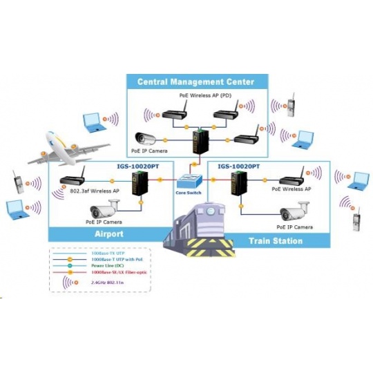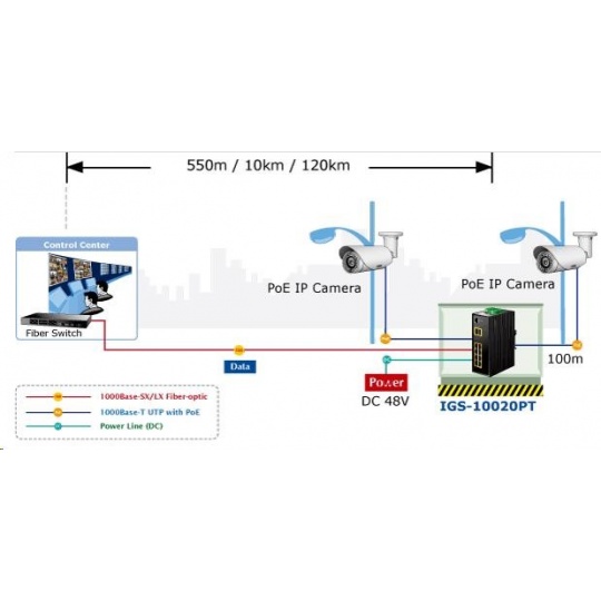 Planet IGS-10020PT PoE switch 8x 1000Base-T, 2x SFP, 802.3af 130W, IP30, -40 až 75°C, SNMP, IGMPv3, IPv6