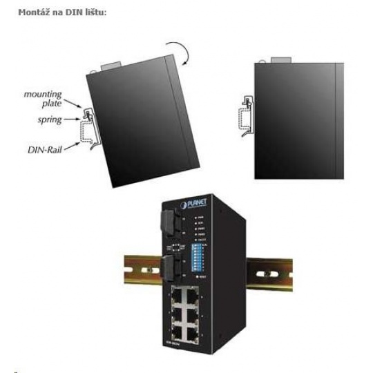 Planet ISW-501T, 5x 10/100, DIN,IP30, rozšířený teplotní rozsah -40~75 st.C