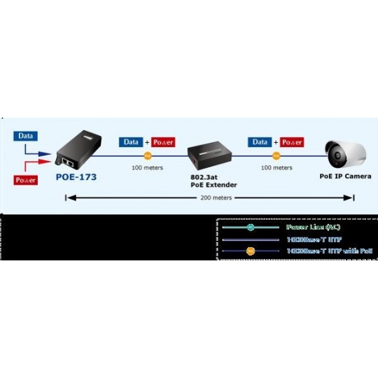 Planet POE-173 Ultra Poe injektor napájení po ethernetu IEEE802.3at/af, 60W, Gigabit