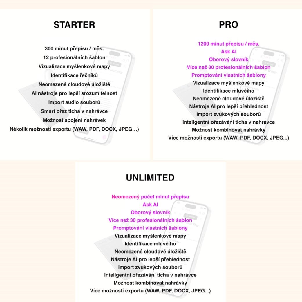 • Váš 3v1 asistent: Záznam, přepis, souhrn. 300 minut měsíčně zdarma.