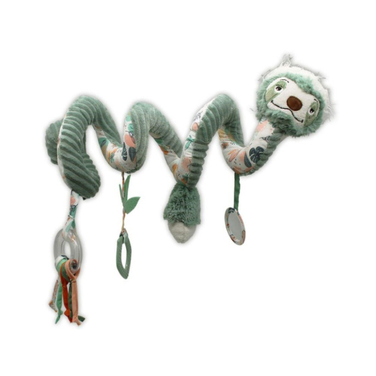 Plyšová spirála na postýlku, na kočárek nebo na hrazdičku, v podobě roztomilého lenochoda upoutá pozornost každého miminka. Úžasně heboučká spirála s chrastítkem, zrcátkem, kousátkem i pískací hračkou stimuluje dětské smysly, rozvíjí jemnou motoriku a koordinací očí a rukou. Prohlédněte si originální spirálu, která vykouzlí úsměv na tváři dětem i rodičům..