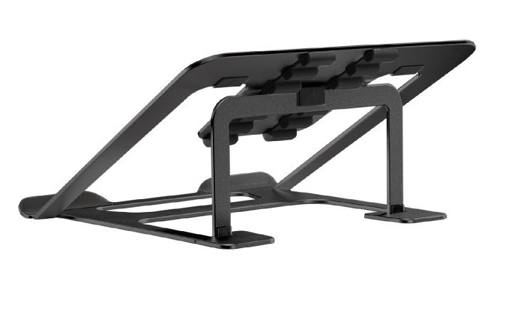 Podstava na notebook laptop Fiber Mounts M4C16B černý Přenosná hliníková podstava / stojan na notebook nebo laptop 11-15", polohovatelný, nosnost 5kg, barva černá Kvalitní hliníková podstava / stojánek na ergonomické podložení notebooku nebo laptopu s úhlopříčkou 11-15" (běžné velikosti) a 6-ti stupňové polohování 78mm až 124mm pro nastavení nejvhodnějšího úhlu sklonu pro správné držení těla při práci nebo hraní na notebooku nebo laptopu. Podstavec je opatřen protiskuzovými silikonovými podložkami, které zařízení výborně stabilizují a nebrání cirkulaci vzduchu pro spolehlivé chlazení. Stolní držák, podstavec, stojan na notebook Fiber Mounts M4C16BHliníkový ergonomický podstavec na notebook Fiber Mounts M4C16B Technické údaje: nosnost 5kg na notebooky a laptopy s úhlopříčkou 11-15" 6 stupňů nastavení výšky 78-124mm protiskluzové silikonové podložky pro spolehlivé zafixování polohy značné zlepšení ergonomie pro pohodlnou práci nebo hraní neomezuje dostatečné chlazení přístroje možnost složení pro snadné přenášení nebo na cesty (235x223x13mm) materiál hliník barevné provedení černé záruka 5 let Kvalitní hliníková podstava stojánek na notebook pro výrazné zlepšení ergonomie a pohodlí při práci nebo hraní her Fiber Mounts M4C16 Podstava je vhodná pro všechny běžné velikosti notebooků a laptopů od všech výrobců. Doporučená je velikost notebooku 11-15" ale fungoval stejně spolehlivě i při použití na notebooku o velikosti 17,1". Doporučujeme nejen k pracovním účelům ale i při použití notebooku dětmi při hraní her - výrazná úleva pro Vaše záda, protože značně omezuje hrbení se..