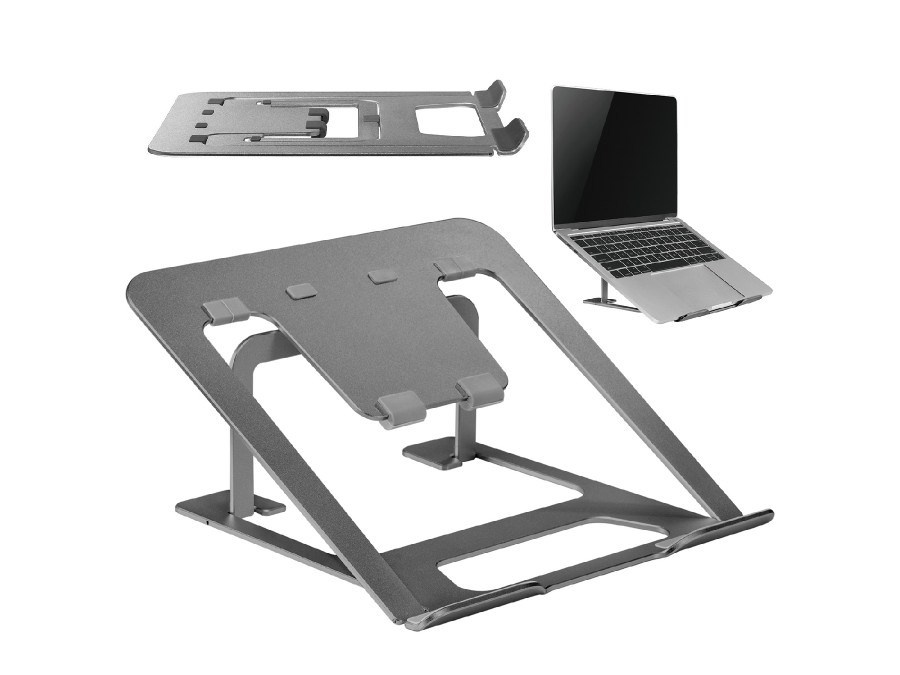 Podstava na notebook laptop Fiber Mounts M4C16G Přenosná hliníková podstava / stojan na notebook nebo laptop 11-15", polohovatelný, nosnost 5kg, barva šedá (do stříbrna) Kvalitní hliníková podstava / stojánek na ergonomické podložení notebooku nebo laptopu s úhlopříčkou 11-15" (běžné velikosti) a 6-ti stupňové polohování 78mm až 124mm pro nastavení nejvhodnějšího úhlu sklonu pro správné držení těla při práci nebo hraní na notebooku nebo laptopu. Podstavec je opatřen protiskluzovými silikonovými podložkami, které zařízení výborně stabilizují a nebrání cirkulaci vzduchu pro spolehlivé chlazení. Hliníkový ergonomický podstavec na notebook Fiber Mounts M4C16G Technické údaje: nosnost 5kg na notebooky a laptopy s úhlopříčkou 11-15" 6 stupňů nastavení výšky 78-124mm protiskluzové silikonové podložky pro spolehlivé zafixování polohy značné zlepšení ergonomie pro pohodlnou práci nebo hraní neomezuje dostatečné chlazení přístroje možnost složení pro snadné přenášení nebo na cesty (235x223x13mm) materiál hliník barevné provedení šedé záruka 5 let Kvalitní hliníková podstava stojánek na notebook pro výrazné zlepšení ergonomie a pohodlí při práci nebo hraní her Fiber Mounts M4C16G Podstava je vhodná pro všechny běžné velikosti notebooků a laptopů od všech výrobců. Doporučená je velikost notebooku 11-15" ale fungoval stejně spolehlivě i při použití na notebooku o velikosti 17,1". Doporučujeme nejen k pracovním účelům ale i při použití notebooku dětmi při hraní her - výrazná úleva pro Vaše záda, protože značně omezuje hrbení se..