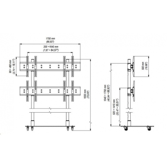 Pojízdný stojan na 4 TV 37"-55" s nosností 160kg, EDBAK TR6-22