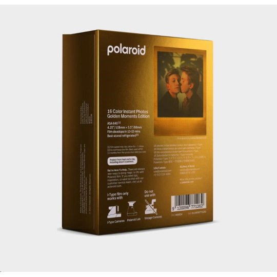 16 color instant photographs in a smooth gold finish for Polaroid i-type cameras. The photo starts to develop directly and the first signs of the photo is visual after a minute. The photo is fully developed in 10-15 minutes.