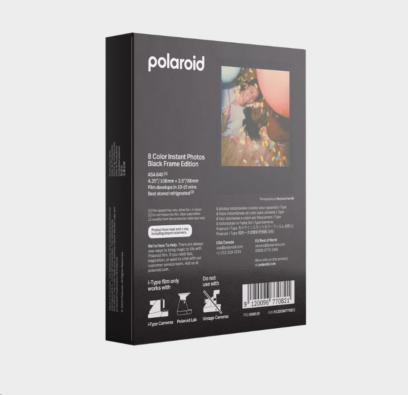 Vyberte si perfektní balení filmu pro extra speciální příležitosti – balení filmu Polaroid i-Type Black Frame Edition.