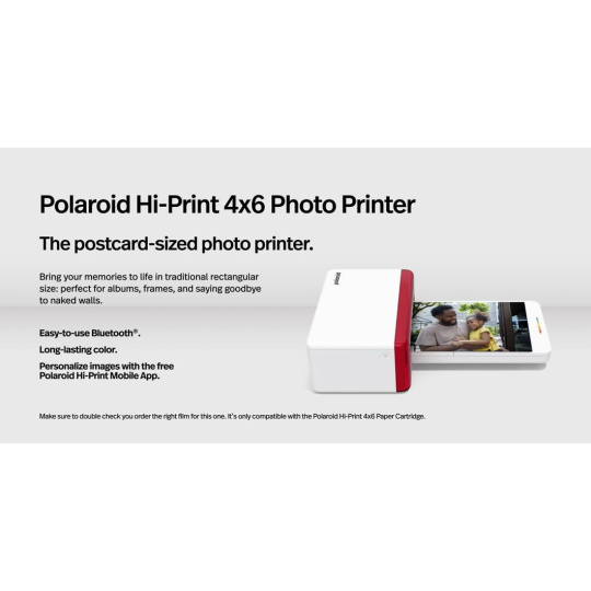 - Součástí je papírová kazeta Polaroid Hi-Print 4x6 - 80 listů.