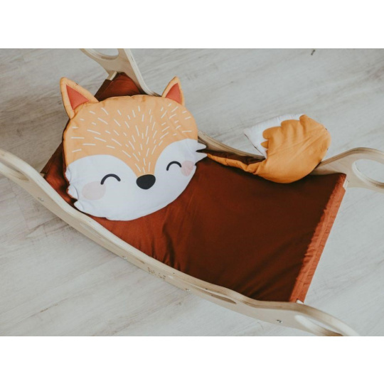 Měkký a roztomilý potah v podobě zrzavé lištičky je doplňkem k naší Montessori houpačce 5in1. Polstrovaná podložka promění multifunkční houpačku v pohodlnou kolébku k příjemnému pohoupání i lenošení. Kmotřička liška bude milou společnicí, která vaší holčičku i chlapce s radostí provede říší snů. Podložku v podobě zvířátka k houpačce připevníte snadno, pomocí suchých zipů..