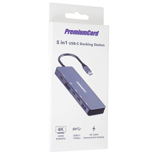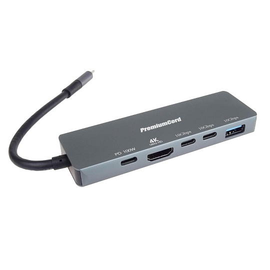 PremiumCord Adaptér USB-C na 4K@60Hz HDMI + 10G USB3.2 A + 10G 2x USB-C + PD
