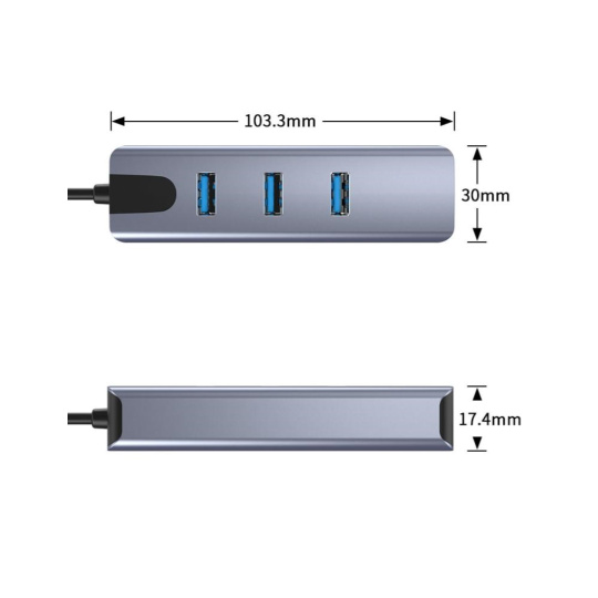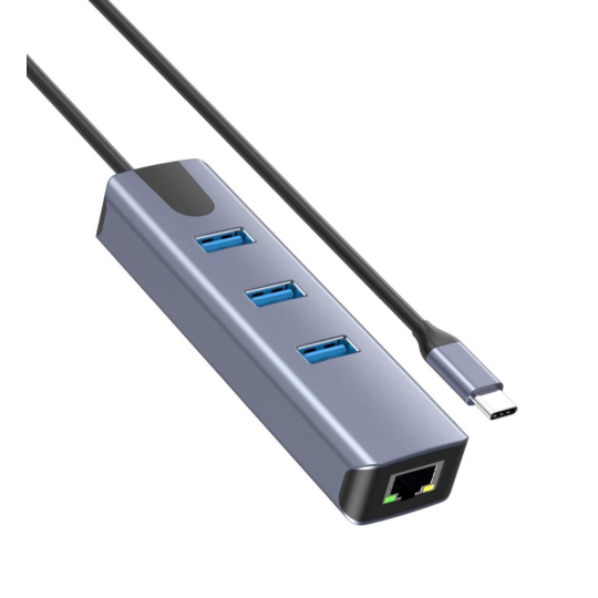 Převodník, který umožní připojit Váš počítač s portem USB typu C do internetu nebo k lokální síti pomocí kabelu s RJ45 (Gigabit) a navíc umožňuje zapojit tři USB3.2 (5 Gbps) periferie jako USB disk, tiskárnu, klávesnici a myš