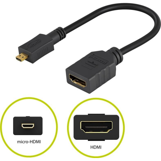 - Konektory: HDMI typ A samice <-> micro HDMI typ D samec