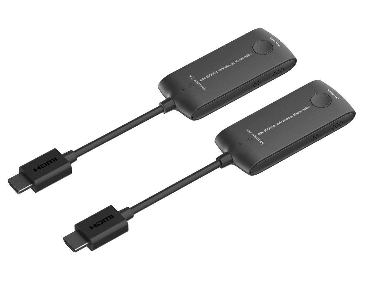 PremiumCord 4K@60Hz HDMI Wireless extender na 20m - Bezdrátový vysílač a přijímač signálu HDMI pro spojení na 20m - Poporuje bezdrátový přenos rozlišení 4K@60Hz a Full HD 1080p na vzdálenost až 20m - Maximální datový tok: 18Gbps - Wifi frekvence: 5 až 5,8GHz - Podporuje rozlišení obrazu: 4K@60Hz/50Hz/30Hz, 2K@60Hz/50Hz/30Hz, FULL HD 1080p@50/60Hz, 1080i@50/60Hz, 720p@50/60Hz - Podporuje:3840x2160@24/30/50/60Hz (YUV 4:4:4, YUV 4:2:2 and RGB),1080P@50/60Hz, 720P@50/60Hz, 1920x1200@60Hz - Podporuje HDMI2.0 - Plně podporuje HDCP2.2 - Podporuje SSID párování - Audio formát PCM - Vysílač představuje malý dongl, který se zasune přímo do konektoru HDMI počítače, notebooku. Vysílač je napájen pomocí USB kabelu z USB portu. - Přijímač představuje malý dongl, který se zasune přímo do HDMI konektoru monitoru nebo projektoru. Přijímač je napájen pomocí USB kabelu z USB portu. - Jednoduchá montáž bez dalšího SW - Vstupní konektory: HDMI konektor vidlice - Výstupní konektory: HDMI konektor vidlice - Odezva menší než 150ms - Extender je napájen za pomoci přiložených USB micro kabelů, které se zasunou do USB portu nebo USB napájecího adaptéru .Extender může fungovat bez externího USB napájení, ale v případě výpadků obrazu nebo horšího zvuku, zapojte USB napájení, protože napájení z HDMI konektoru nepostačuje. - Vysílací a přijímací adaptéry mají krátký HDMI kabel pro snadné zapojení do počítače a zobrazovače nebo TV. - Vzdálenost přenosu závisí na skutečném prostředí. - Pracovní teplota: -20°C až 60°C - Vlhkost: 0-90% (nekondenzující) - Rozměry TX a RX: 40mm x 200mm x 15mm - Váha TX:40g, RX: 40g - Pouzdro černé plastové Pro zařízení je vhodné zajistit optimální podmínky pro přenos bezdrátového signálu: 1, Odstranit rušení signálu jiným bezdrátovým zařízením a odstranit překážky, které stojí signálu v cestě (kovové stěny , sklo, RF rušení apod. v cestě signálu) 2, Signál mohou rušit i vlivy vnějšího prostředí, jako je mikrovlnná trouba, bezdrátové myši a klávesnice., 3 Ujistěte se, že vysílací jednotka je minimálně 20 až 30 cm od zdi a je zhruba ve stejné linii jako přijímací anténa zařízení na druhé straně. Extender nemusí pracovat dobře ve specifických místech jako je např. suterén, tunel atp. Set se skládá - 1x vysílač - Transmitter - 1x přijímač - Receiver - 2x kabel USB - micro USB pro napájení přijímače a vysílače.