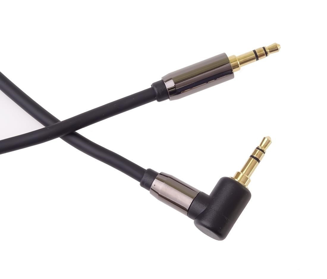 PremiumCord HQ stíněný kabel stereo Jack 3.5mm - Jack 3.5mm zahnutý 90° 5m