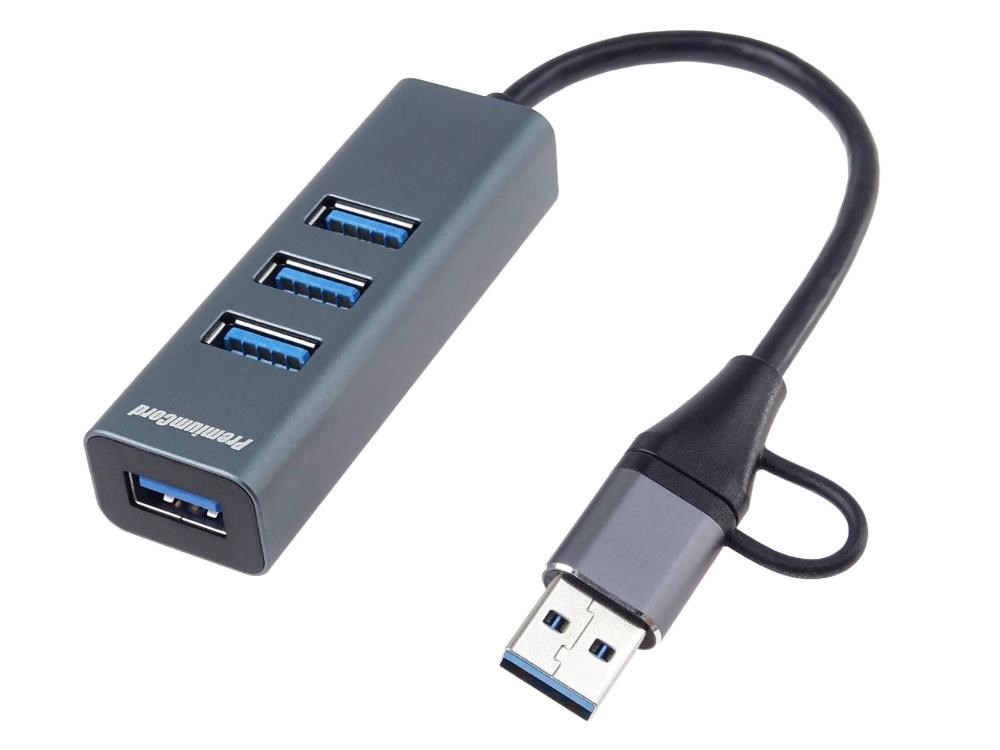 PremiumCord Hub 5G SuperSpeed, USB-C a USB-A na 4x USB-A 3.2 Gen 1