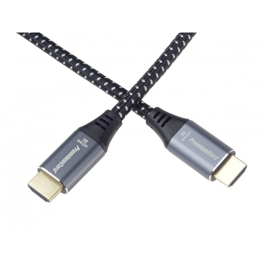 PREMIUMCORD Kabel HDMI 2.1 High Speed + Ethernet kabel 8K@60Hz, zlacené konektory, 0,5m