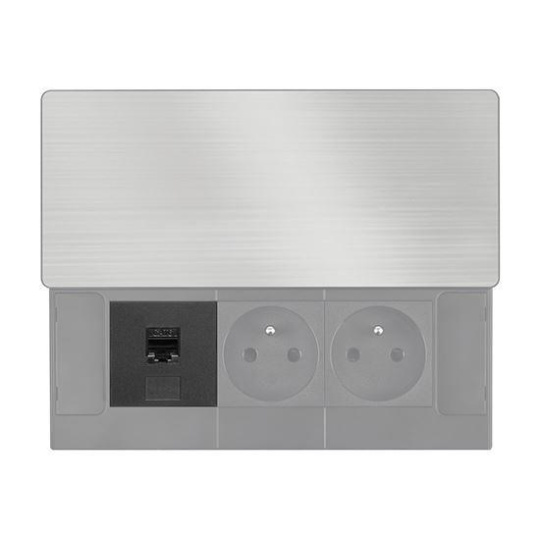 1ks RJ45: po vyjmutí 230V/16A zásuvky, do prázdného otvoru se nasadí kabel s RJ45 panelem 45*45mm (1x PP128-RJ45)