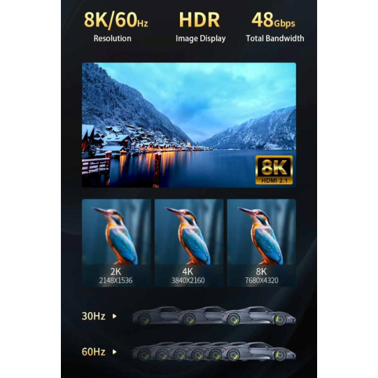 - Podporuje Ultra High Definition rozlišení 8K@60Hz, 4K@120Hz, YUV 4:4:4