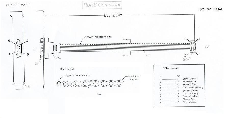 Vývod pro sériový port RS232 ze základní desky počítače na záslepku. Vývod sériového portu ze základní desky počítače na záslepku na zadní straně počítače. - konektor Canon 9M na záslepce - interní konektor 2x 5pinů - délka kabel 23cm.