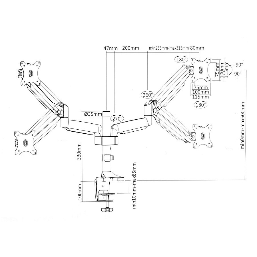 Velmi kvalitní, spolehlivý designový stolní držák na 2 monitory 13-32", nezávislé nastavení výšky, náklonu, otáčení, vzdálenosti i výšky monitoru, nosnost 18kg.... více
