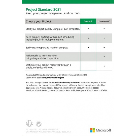 Pro koho je licence určena:Komerční; Jazyk:Slovenský; Způsob licencování:Plná verze; Typ licence:Krabice; Produktová řada:Office Standard.