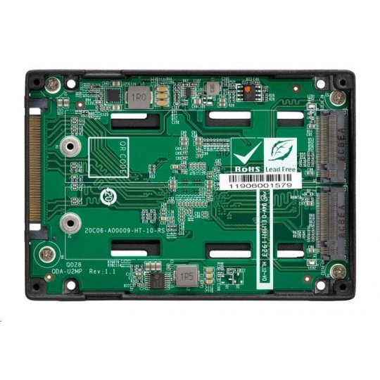 Produkt QDA-U2MP dokáže pojmout dva M.2 PCIe 3.0 x4 NVMe SSD uvnitř jedné 2,5” diskové pozice U.2 (SFF-8639) PCIe 3.0 x4 NVMe SSD. Pro QDA-U2MP není nutný žádný softwarový ovladač a lze jej nainstalovat do počítače/pracovní stanice (Windows®, Linux®) nebo QNAP NAS, kde umožňuje použít místo nákladnějšího U.2 SSD dostupnější M.2 SSD.