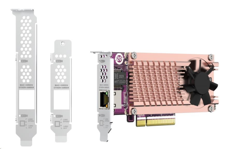 Zařízení QM2-2P10G1TB umožňuje snadno přidat k vašemu QNAP NAS dva M.2 NVMe SSD a připojení 10GbE RJ45. Ve srovnání s rozhraním SATA rozhraní PCIe Gen3 x 8 zařízení QM2-2P10G1TB nabízí vyšší přenosovou šířku s větším výpočetním výkonem a rychlejším přístupem k datům. Zařízení QM2-2P10G1TB zvyšuje výkon NAS přidáním M.2 PCIe Gen3 NVMe SSD. Nezabírá 3,5" pozice pro disky, což umožňuje maximalizovat úložnou kapacitu i výkon. Zařízení QM2-2P10G1TB disponuje síťovým portem 10GBASE-T Multi-Gigabit (10G / 5G / 2,5G / 1G / 100M), díky němuž vaše zařízení QNAP NAS může získat vysokorychlostní konektivitu 10GbE pro úkoly náročné z hlediska přenosové šířky. S různými switchi QNAP 10GbE můžete snadno provést upgrade na vysokorychlostní síťové prostředí.