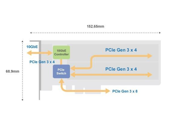 PCIe Gen3 rozšiřující karta s 2x NVMe SSD sloty a 1x 10GbE portem pro zvýšení výkonu