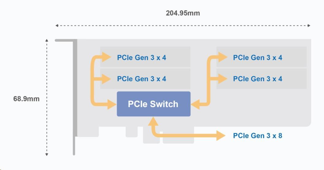 Technické specifikace| Konektor | 4 x M.2 2280 PCIe (Gen 3 x 4) NVMe SSD sloty |