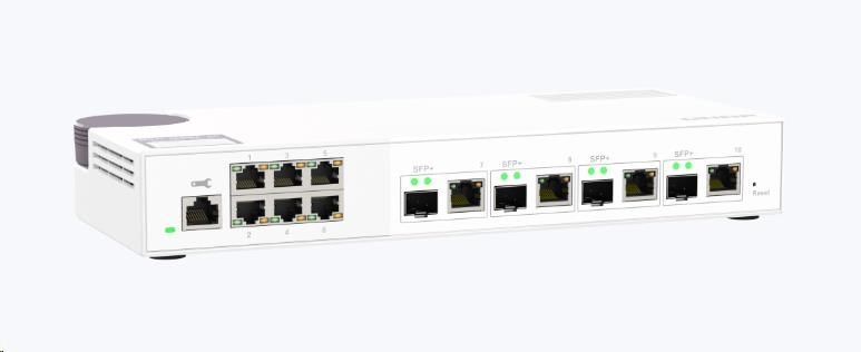 Zařízení QSW-M2106-4C je webově řízený přepínač (switch) úrovně 2 se čtyřmi kombinovanými porty 10GbE SFP+/RJ45 a šesti porty 2,5 Gigabit. Zařízení QSW-M2106-4C podporuje přepínání a správu sítě úrovně 2 (L2) prostřednictvím uživatelsky vstřícného webového rozhraní, nabízí flexibilní nasazení v hybridních vysokorychlostních síťových prostředích a poskytuje řešení pro správu sítě na základní úrovni, které zvládnou používat I ti, kdo nepatří mezi profesionály v oboru IT. Díky vysokému výkonu, uživatelsky přívětivé správě a stolnímu provedení umožňuje zařízení QSW-M2106-4C nákladově efektivní upgrade na síť 2,5GbE nebo 10GbE při optimalizaci šířky pásma a zajištění bezpečné údržby sítě. Zařízení QSW-M2106-4C se vyrábí na Tchaj-wanu (MIT) a poskytuje vysoce kvalitní a spolehlivé síťové řešení.